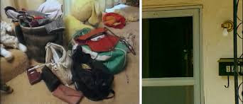 Later, Janelle called her boyfriend, Mike, and drove to Sherrill’s home close to 9 A.M. When they pulled in cars belonging to Suzanne, Stacy, and Sherrill were present, but Stacy's wasn't parked in her usual area under the carport. She got out of the car with Mike to knock on the front door. Janelle and Mike were on the front porch they noticed the front door was left wide open. There had been broken glass scattered everywhere, coming from the globe that covers the light, but the light itself was perfectly intact. Mike grabbed a nearby broom and swept up the glass.